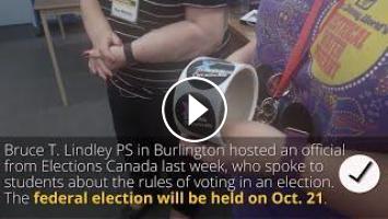 Bruce T. Lindley PS in Burlington hosted an official from Elections Canada last week, who spoke to students about the rules of voting in an election. The federal election will be held on Oct. 21.